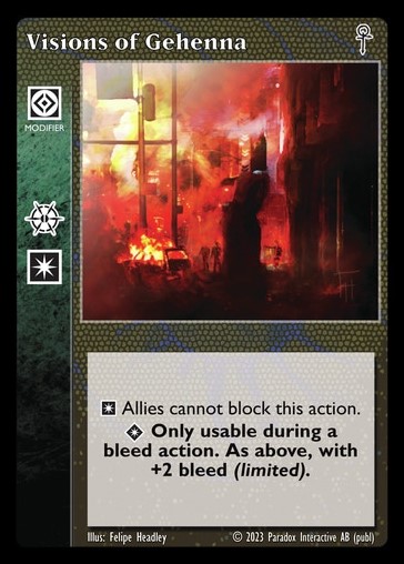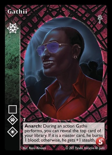 This deck is about charm and misdirection. Your vampires use their powers of Obfuscate and Presence to distract and manipulate foes, undermining their power. For protection you rely on animal spies and guards, and yet more illusions to turn even the mightiest threat completely harmless.